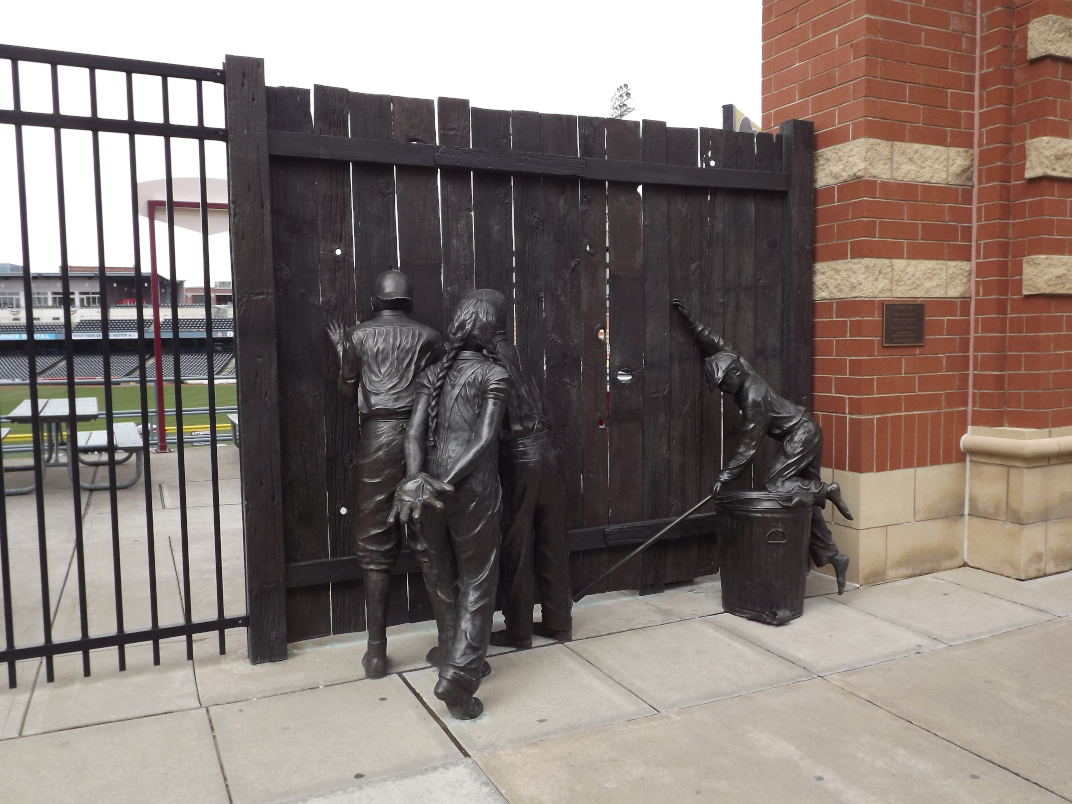 “Who’s Up,” a sculpture outside Fifth Third Field by Bowling Green artist Emanuel Enriquez, who modeled three of the children after grandchildren of friends. The boy on the right is modeled after himself. Toledo Free Press photo by Sarah Ottney.